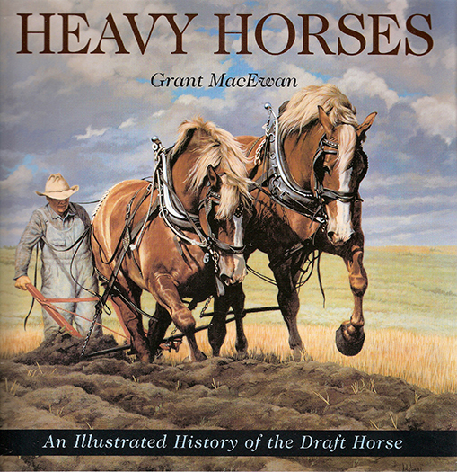 Title: Heavy Horses: An Illustrated History of the Draft Horse Author: Grant MacEwan Publisher: Fifth House Ltd., 2001 From the Publisher: "Valued for their towering stature, strength, and endurance, the draft horse played an essential role in the building of Canada. They were the main source of power on early farms, able to do the heavy work that has since fallen to their mechanical replacement, the tractor. Although far less common now, these heavy horses have re-emerged on the world stage thanks to the efforts of a few devoted breeders." |